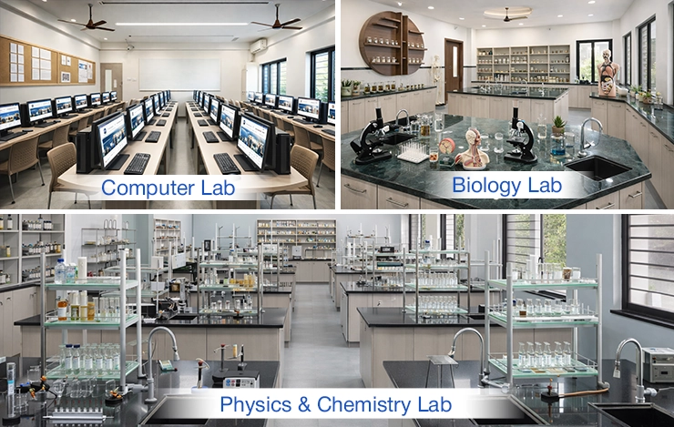 The school offers well-equipped laboratories that provide practical, hands-on learning experiences: